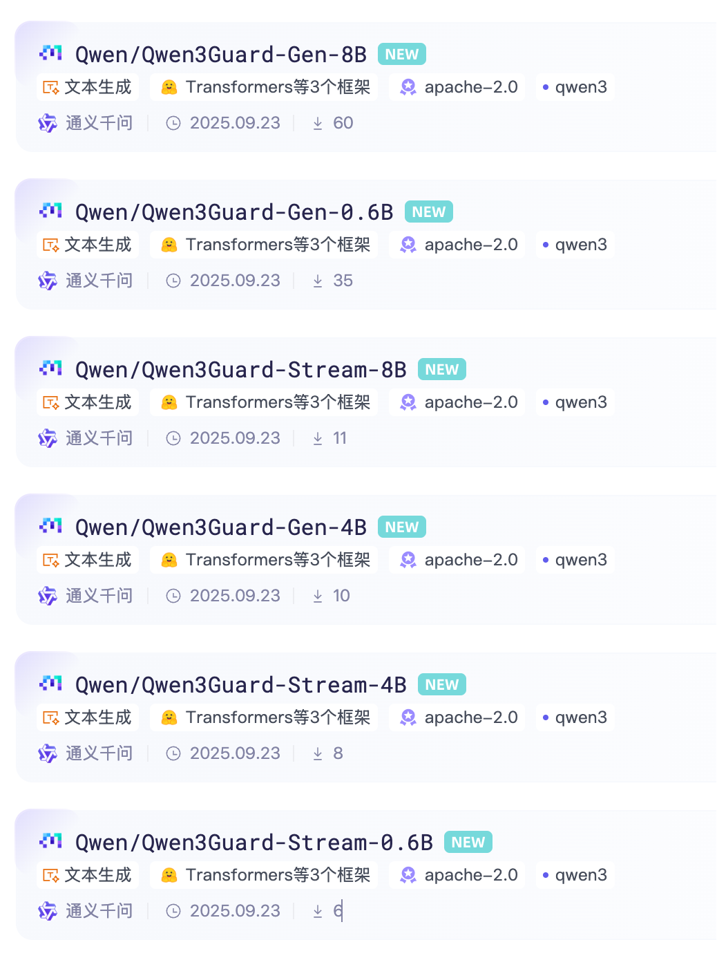 阿里开源的 Qwen3 安全审核模型Qwen3Guard,一共 2 个,分两类: