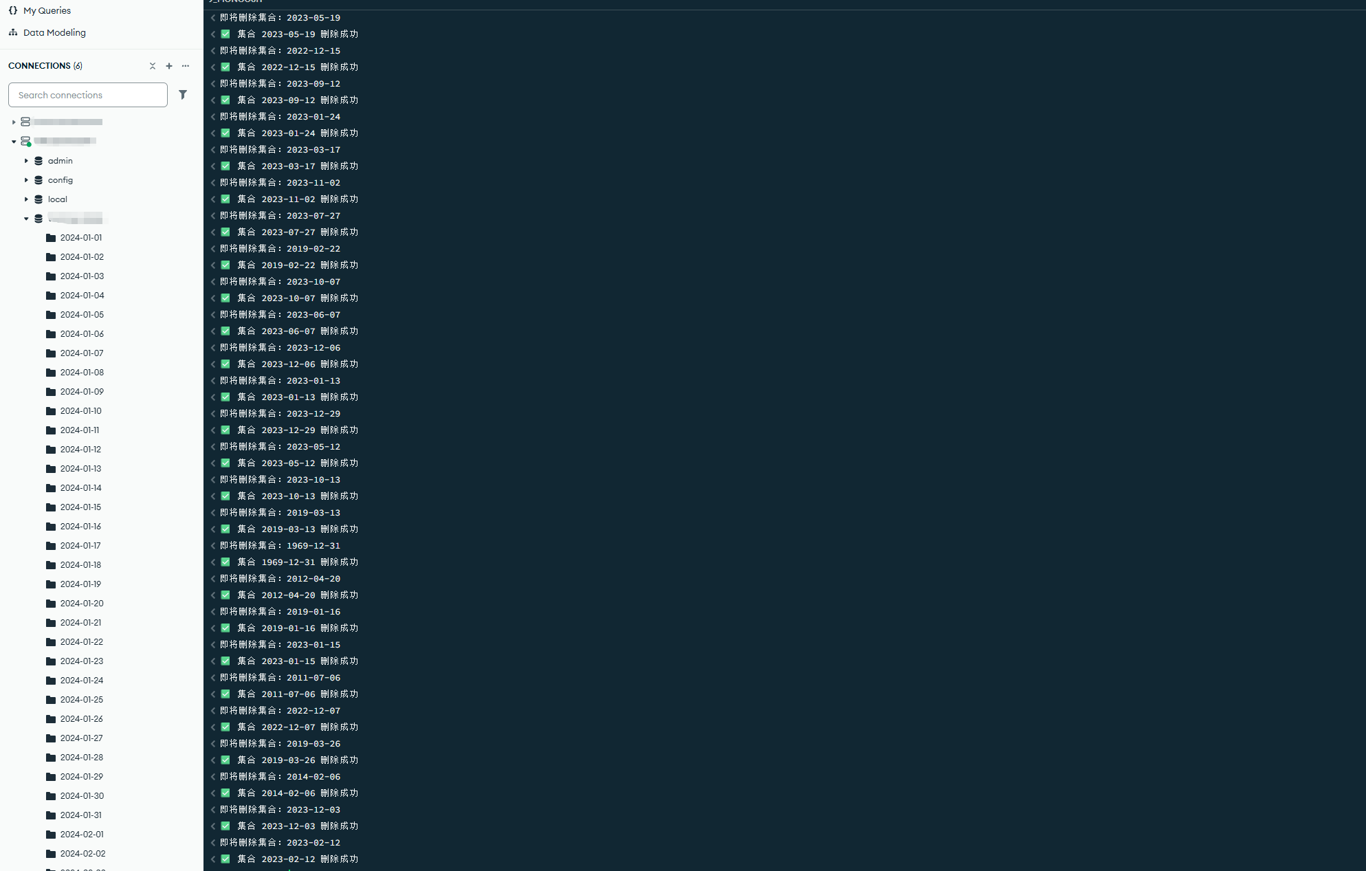 yyyy-MM-dd,名称字符串小于2024-01-01(我定义的时间)的集合; - 批量执行集合删除操作(使用