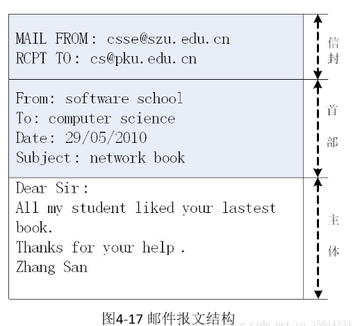 - 信封:主要是传输层指令,给邮件服务器/MTA看的