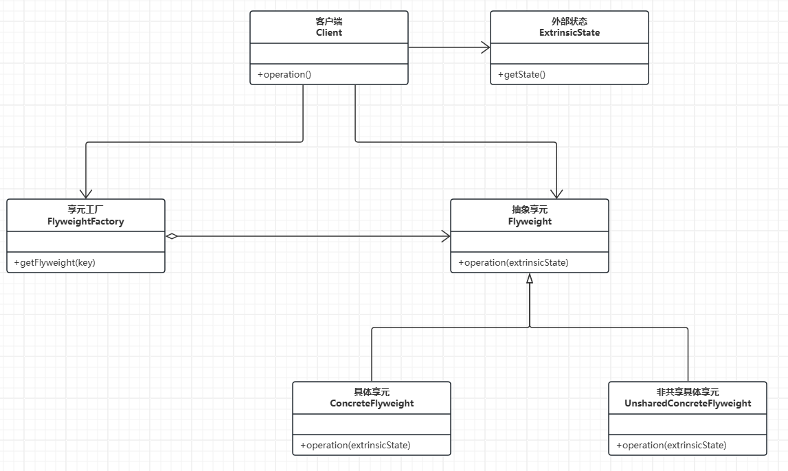 享元模式的经典结构包含以下核心角色,其UML类图如下: