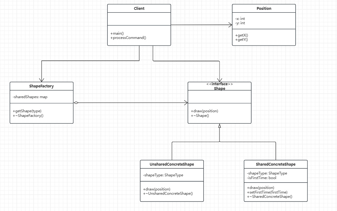 Shape :抽象享元接口,定义draw()方法接收外部状态Position。