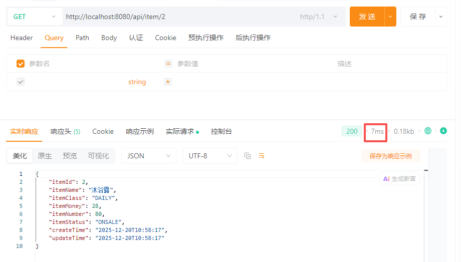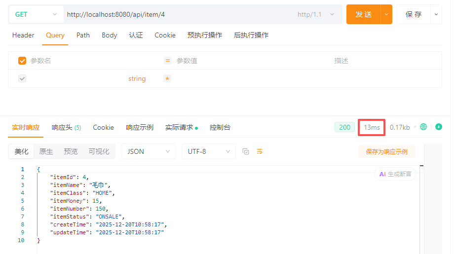 第一次查询 就13ms,什么原因呢?其实是因为有mybatis-plus 的一级缓存及数据库的缓存,所以才这么快