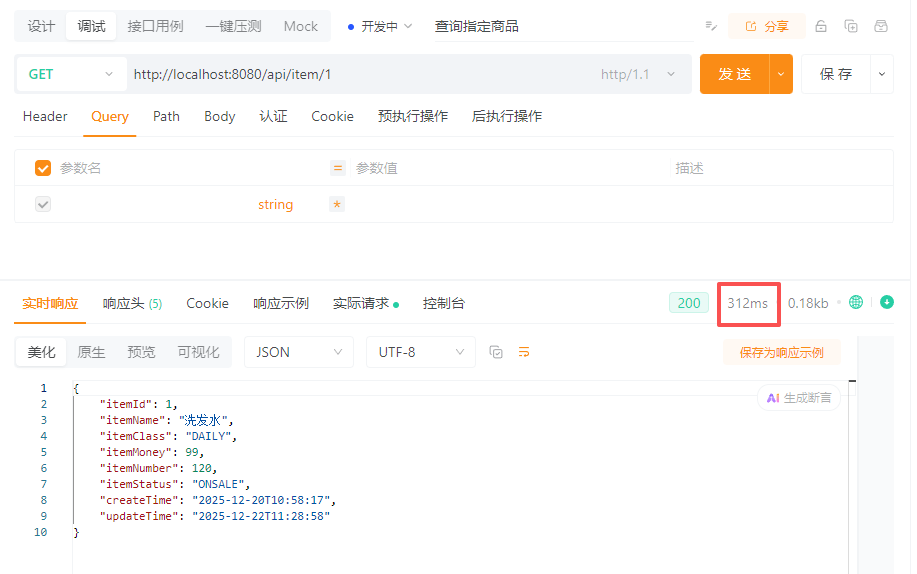 按道理应该第一次就会312ms ~ 600ms 左右,后面加上缓存就会 <10ms