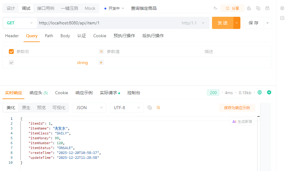 INSERT INTO `t_item` VALUES (1, '洗发水', 'DAILY', 99.00, 120, 'ONSALE', '2025-12-20 10:58:17', '2025-12-22 11:28:58');