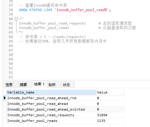 -- 如果接近99%,说明几乎所有数据都在内存中