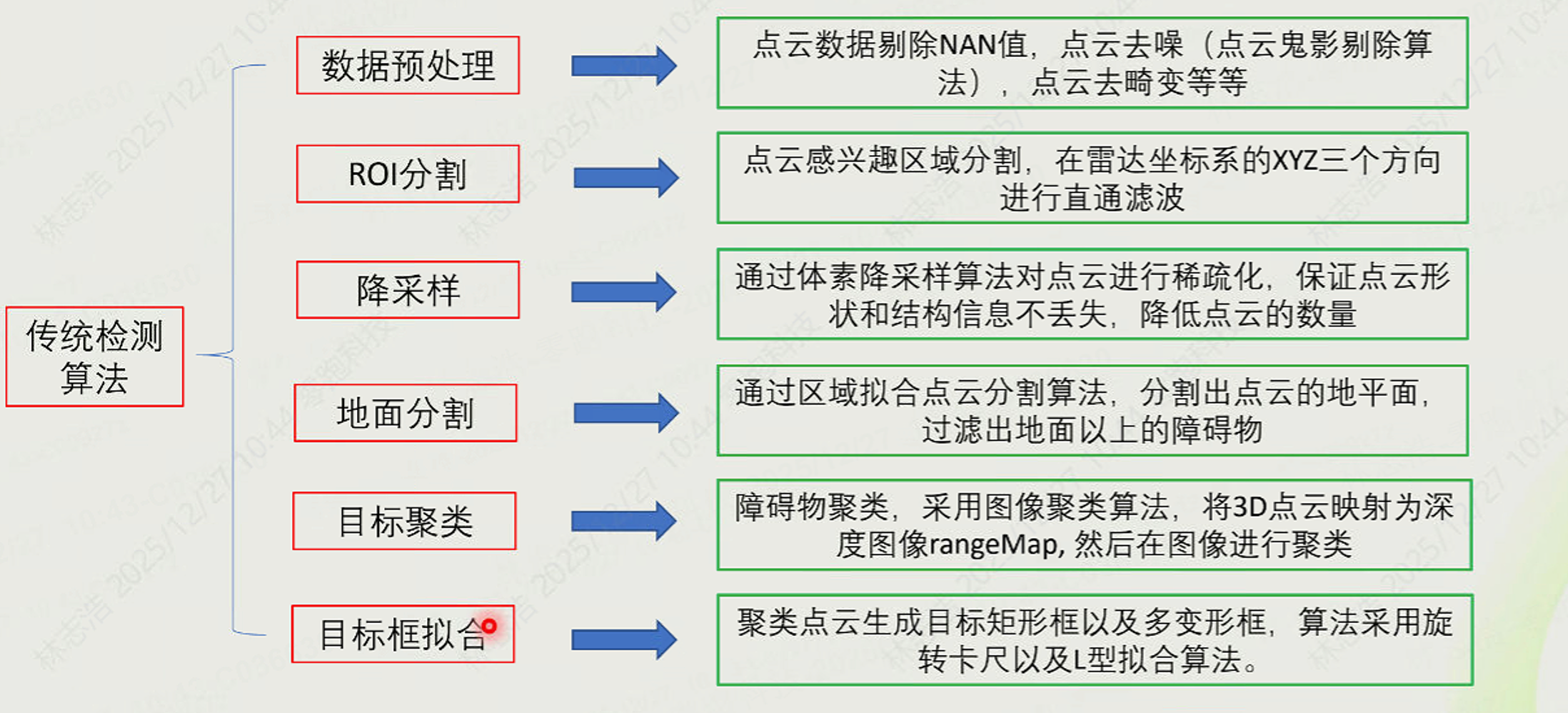地面分割:使用 RANSAC 或 Patchwork 算法把"路"剔除,剩下的就是"障碍物"。