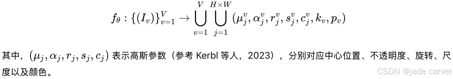,我们的目标是学习一个前向网络 θ,用于预测表示底层场景的 3D 高斯。