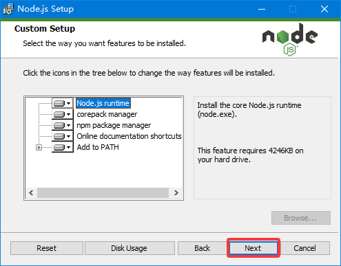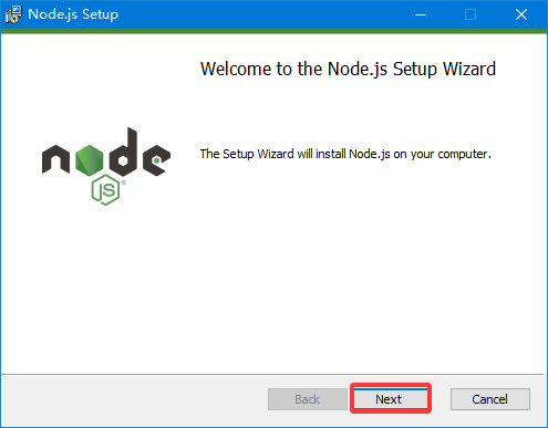 Node.js 安装包下载完成后,双击 node.js 安装包,运行 node.js 安装程序,进入软件安装,点击 Next 继续安装。