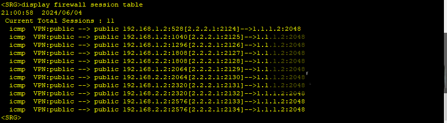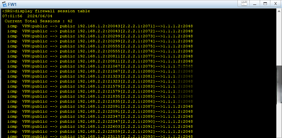 在FW1上能看到NAT转换成功。