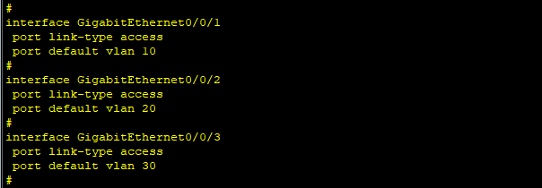 配置端口,将三个端口与对应VLAN绑定