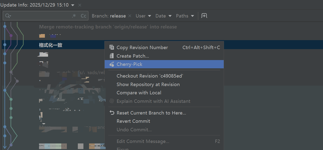 分析:这边推荐使用cherry pick实现不同分支之间的改动平移