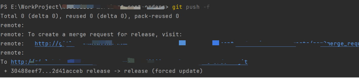 然后再git push -f 强制推送,即可把release分支恢复到干净的版本了