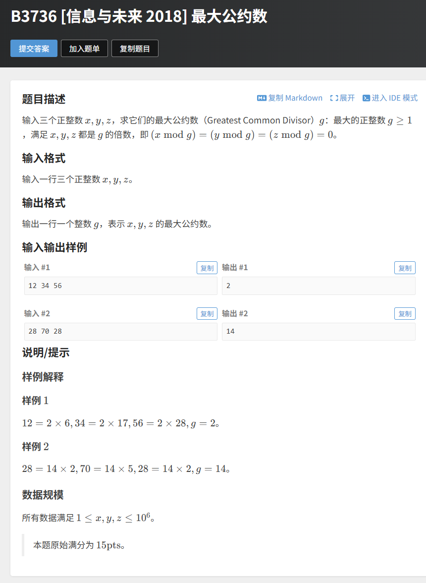 例题 1:洛谷 B3736 最大公约数(基础题)