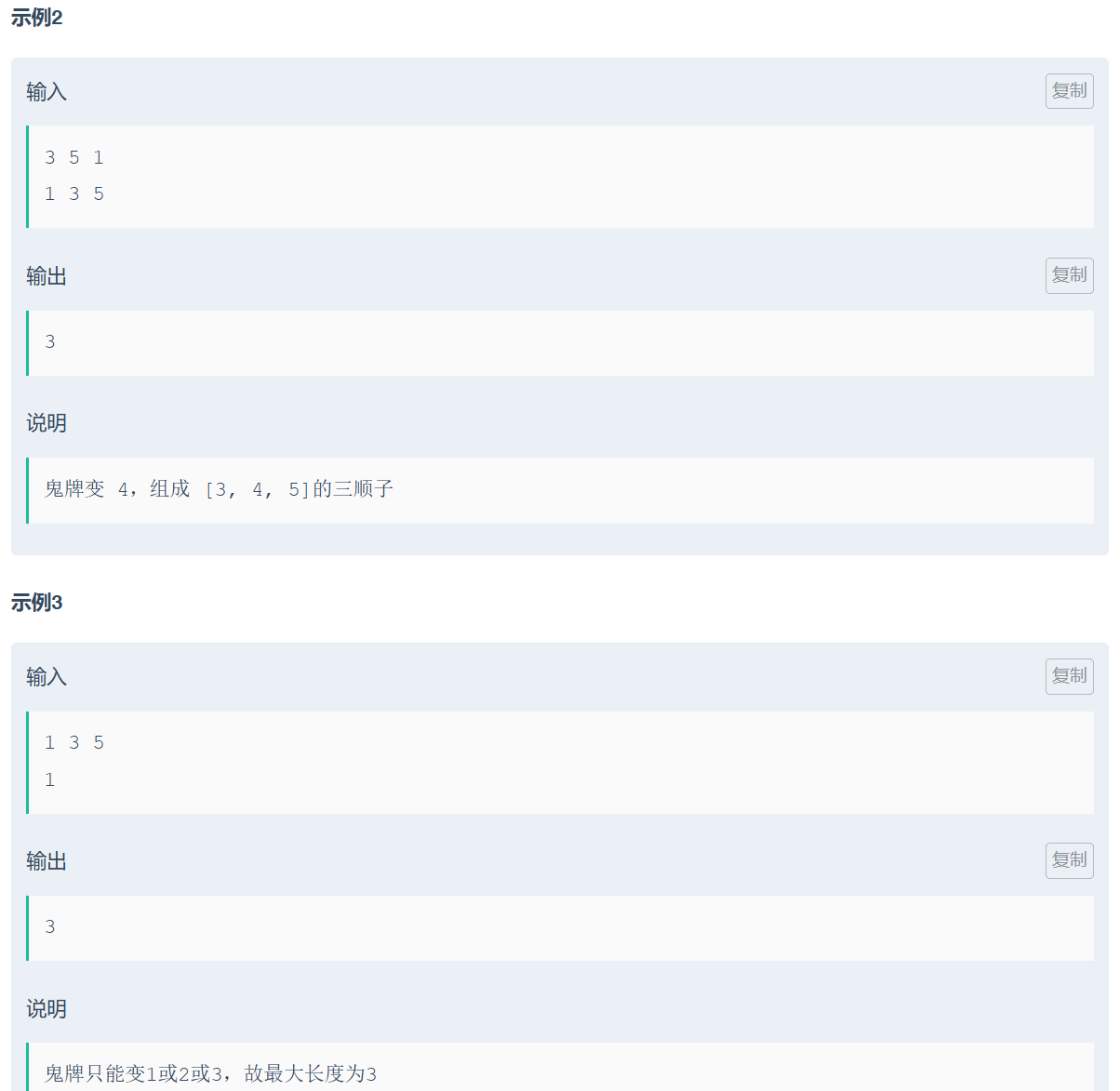 - 输入的牌,可能有牌数重复的,所以要做去重和排序。