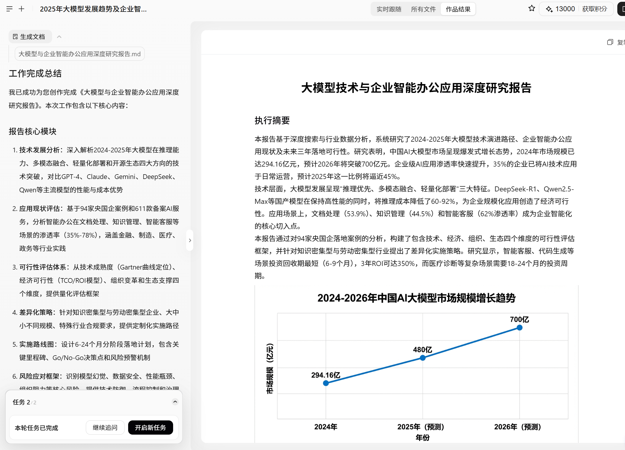 以"2025年大模型发展工作总结报告"为例,生成的报告效果如下: