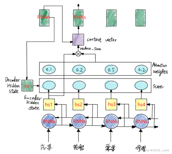 - 经过循环神经网络(RNN),将最后一层的隐层输出作为上下文向量