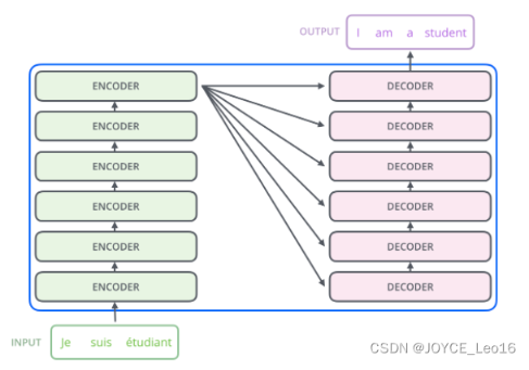 边是N个编码器,右边是N个解码器,图中Transformer的N为6。
