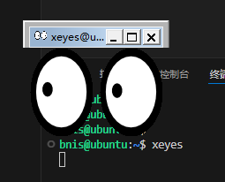 - 测试是否设置成功, 在 VScode 终端运行一下linux自带的gui程序:xeyes,xclock,xcalc