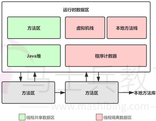 两个组件为Runtime data area(运行时数据 区)、Native Interface(本地接口)。