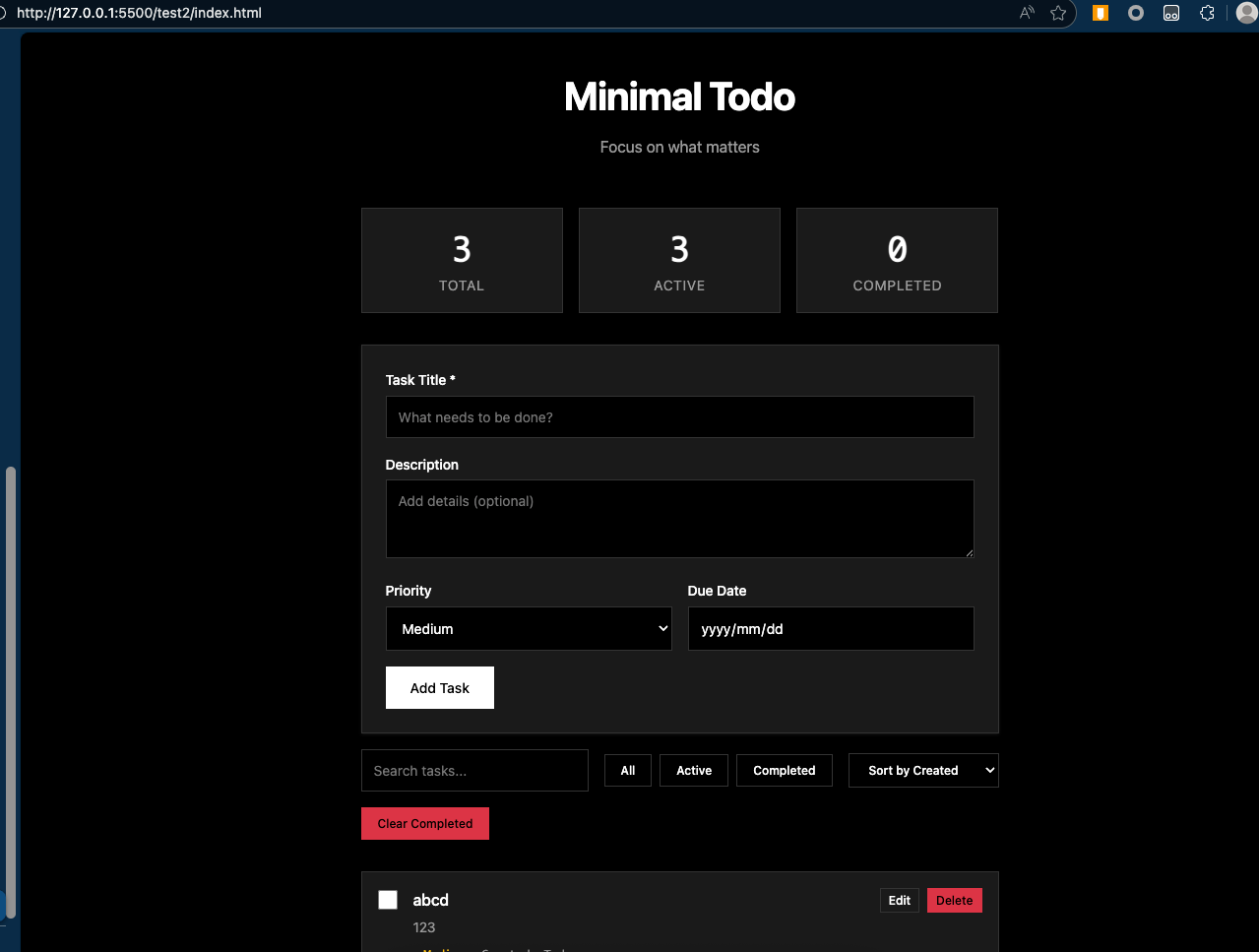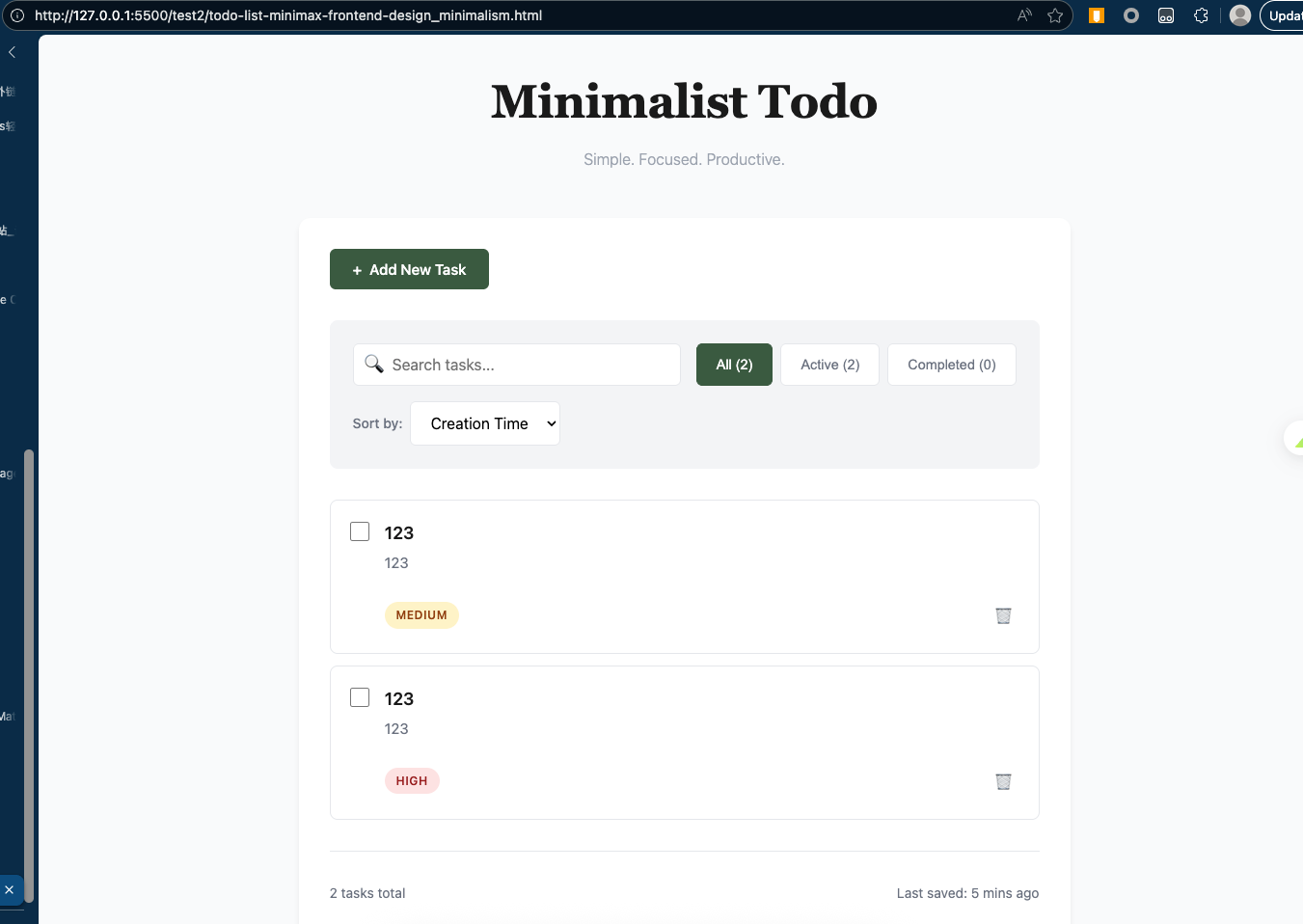 本次实验我不比较代码实现细节,直接从最终成果来评估各模型的表现。以下是三款模型生成的Todo List应用效果:
