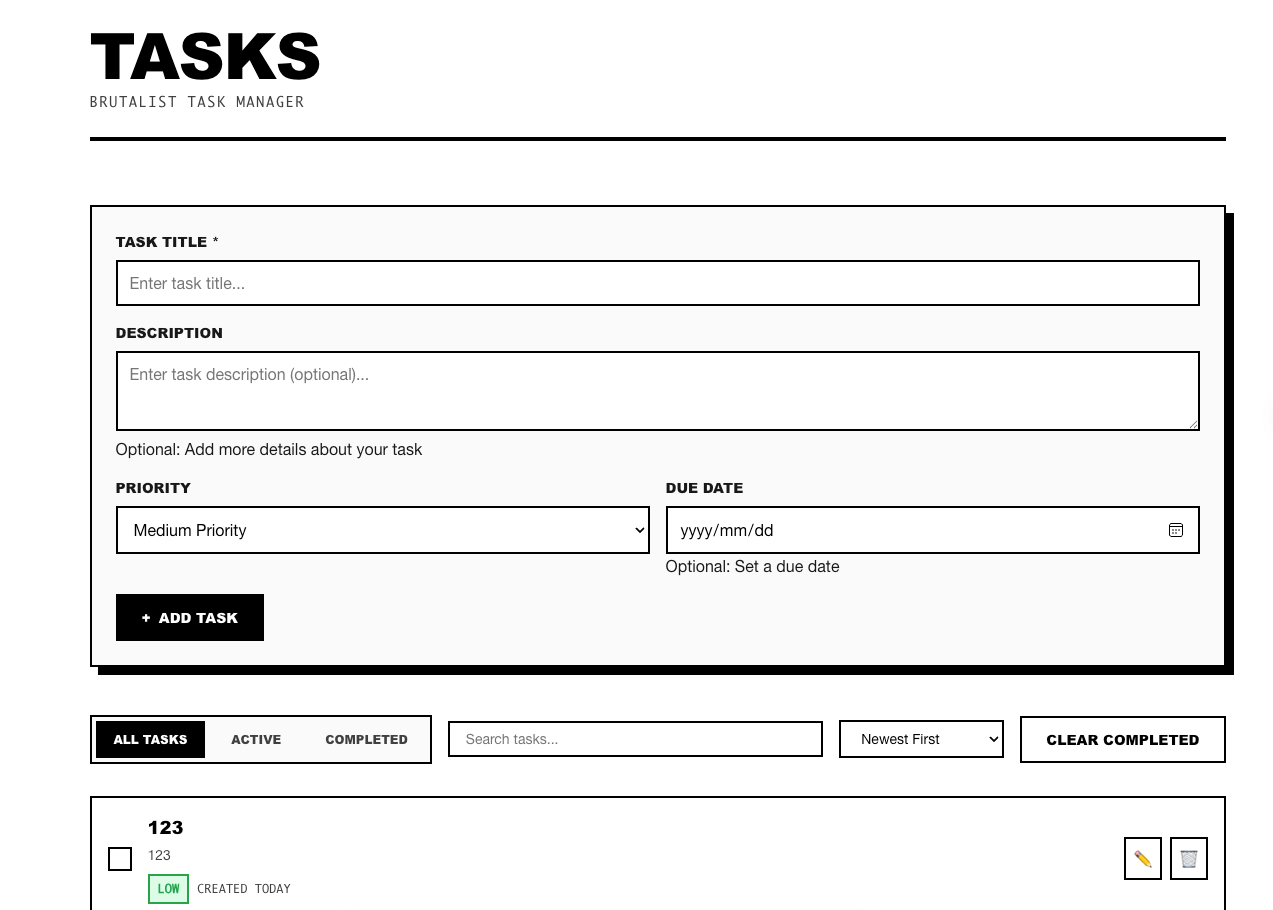 ● Data Persistence: Implement using browser's LocalStorage. All data should persist after page refresh/close.