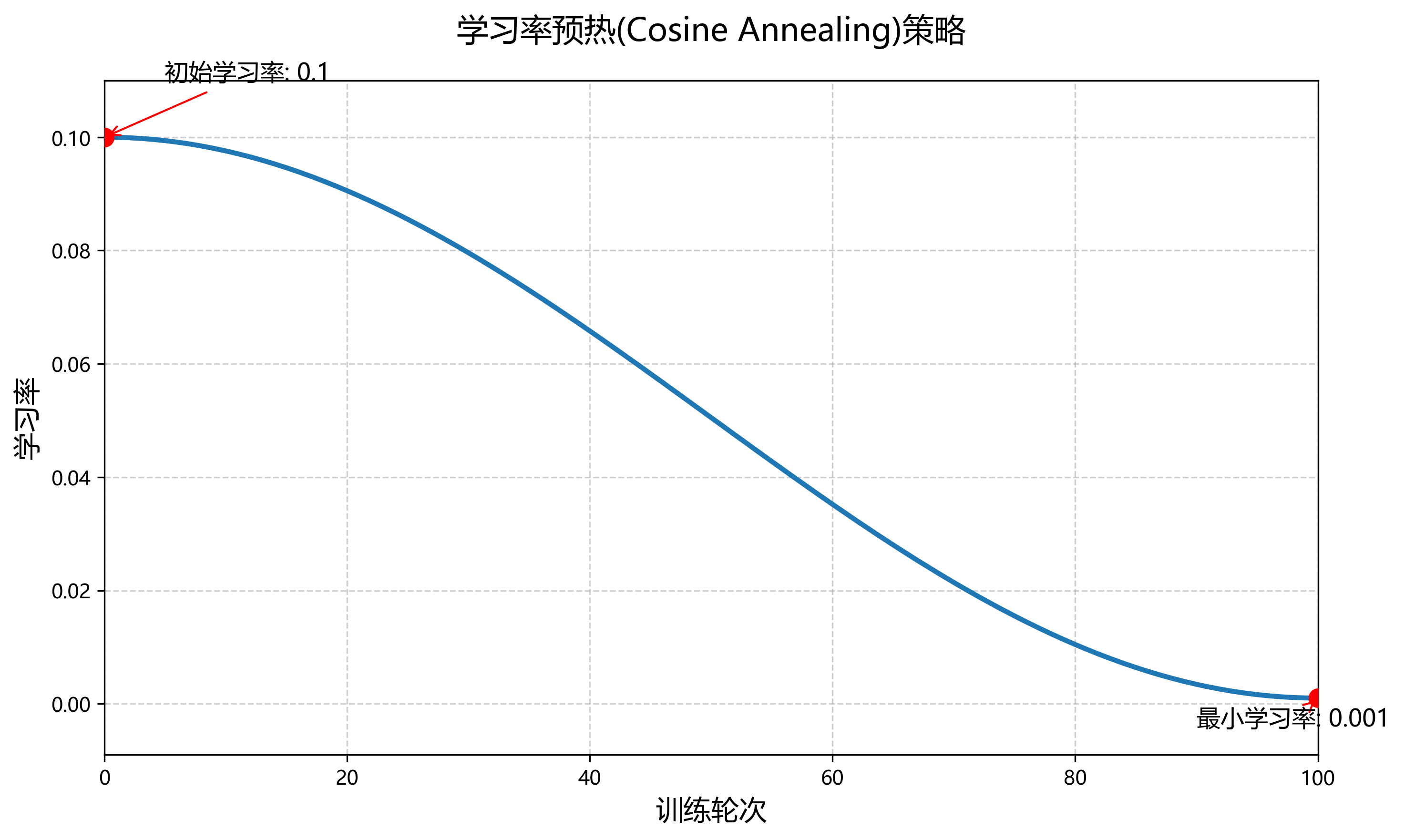 其中,η_t表示当前学习率,η_max和η_min分别是最大和最小学习率,t是当前迭代次数,T是总迭代次数。