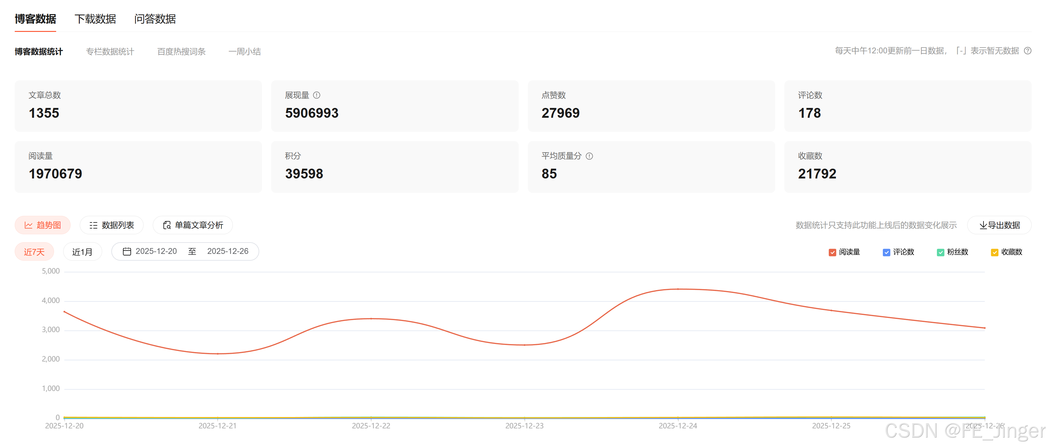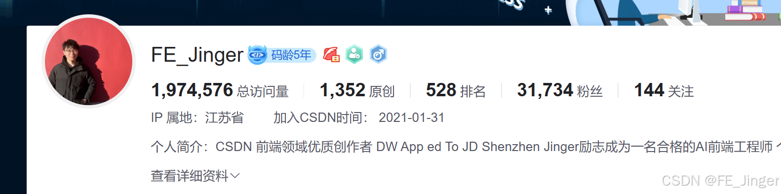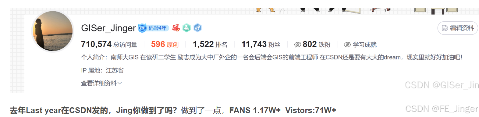 年初给自己设定目标是2w+粉丝,150w+阅读量,超额完成任务,目前粉丝量到3.1w+,总阅读量近200w