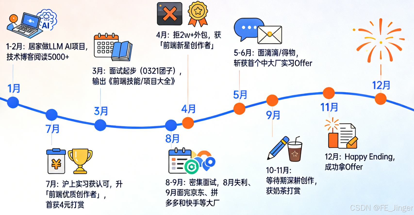 | 12月 | 等待终有结果 | 圆满收尾,成功拿到心仪Offer(比较Happy Ending) |