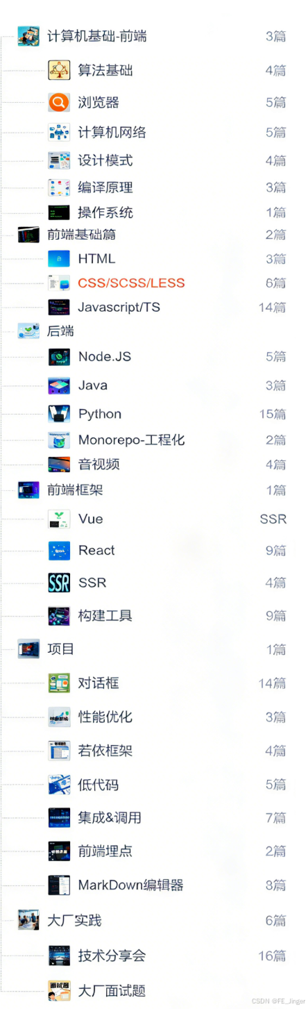 近期,将创作内容进行按主题分类,精选一些文章并成了专栏,专栏包括"计算机基础"、"前端面试"、"前端(三件套、框架、工程化、性能优化等)、"主流&前沿(AI、大前端、前端埋点、WebGL、技术大会等)等等",详细见主页分类专栏