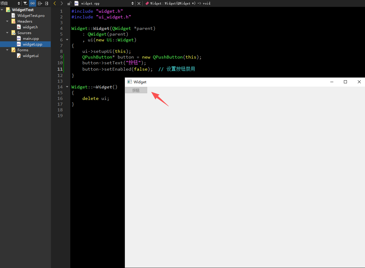 运行并尝试切换控件状态,此时是可以对button的可用状态进行切换的。