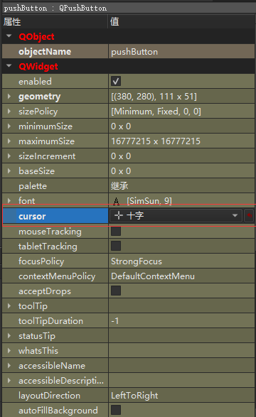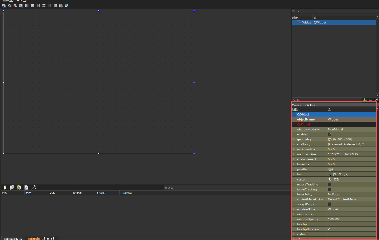 在QtCreater 的设计界面的右边可以看到QWidget的一些属性。