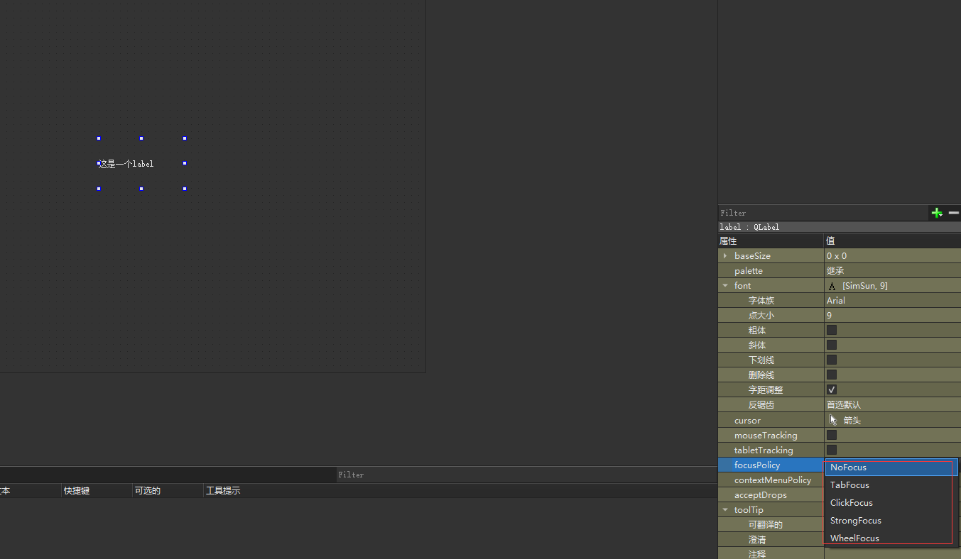 这里可以设置4种属性,默认label是Nofocus的,也就是无法选中。