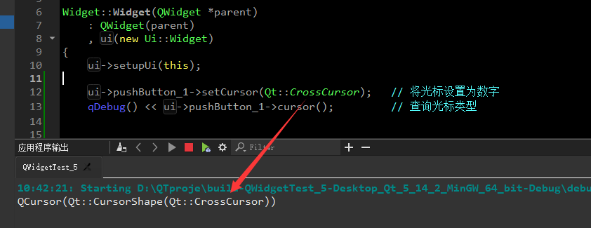 cursor() 获取到当前widget的cursor属性,返回QCursor对象。当鼠标悬停在该widget时,就会显示出对应的形状。