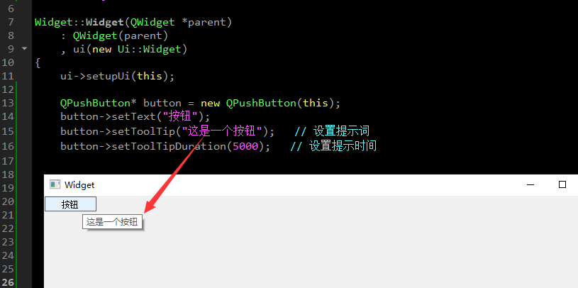 setTooTip() 设置widget的提示词,鼠标悬停在该widet上会有提示。