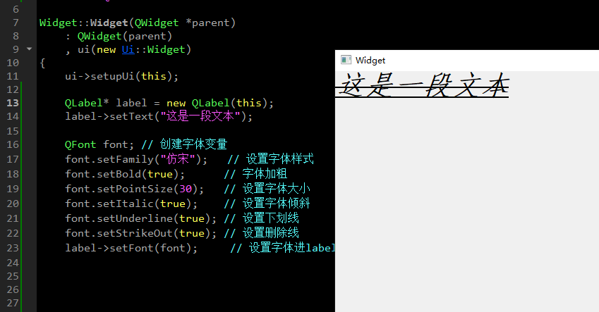 setFont(const QFont& font) 设置当前 widget 的字体信息.