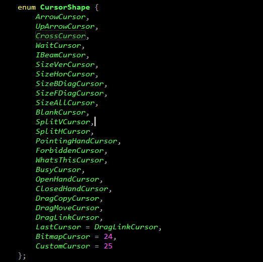在Qt中内置了许多光标的类型,在Qt源码中进行查看: