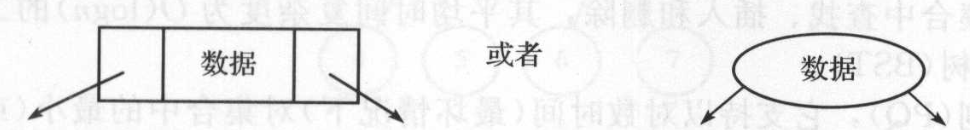 接下来定义二叉树的结构。为了简单起见,假定结点的数据为整数。表示一个结点(包含数据)的方法之一是定义两个指针,一个指向左孩子结点,另一个指向右孩子结点,中间为数据字段(如下图所示)。