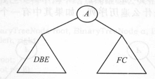 在前序序列中,最左边的元素是树的根结点。所以A是给定序列的根。通过在中序序列中找到'A',能够找到'A'左边的所有元素,它们来自左子树,也能找到'A'右边的所有元素,它们来自右子树。因此可以得出如下的二叉树。