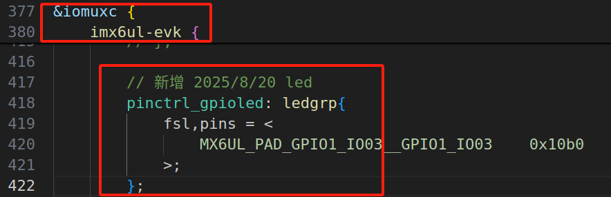 使用led0,将其对应的gpio1_io03复用为gpio: