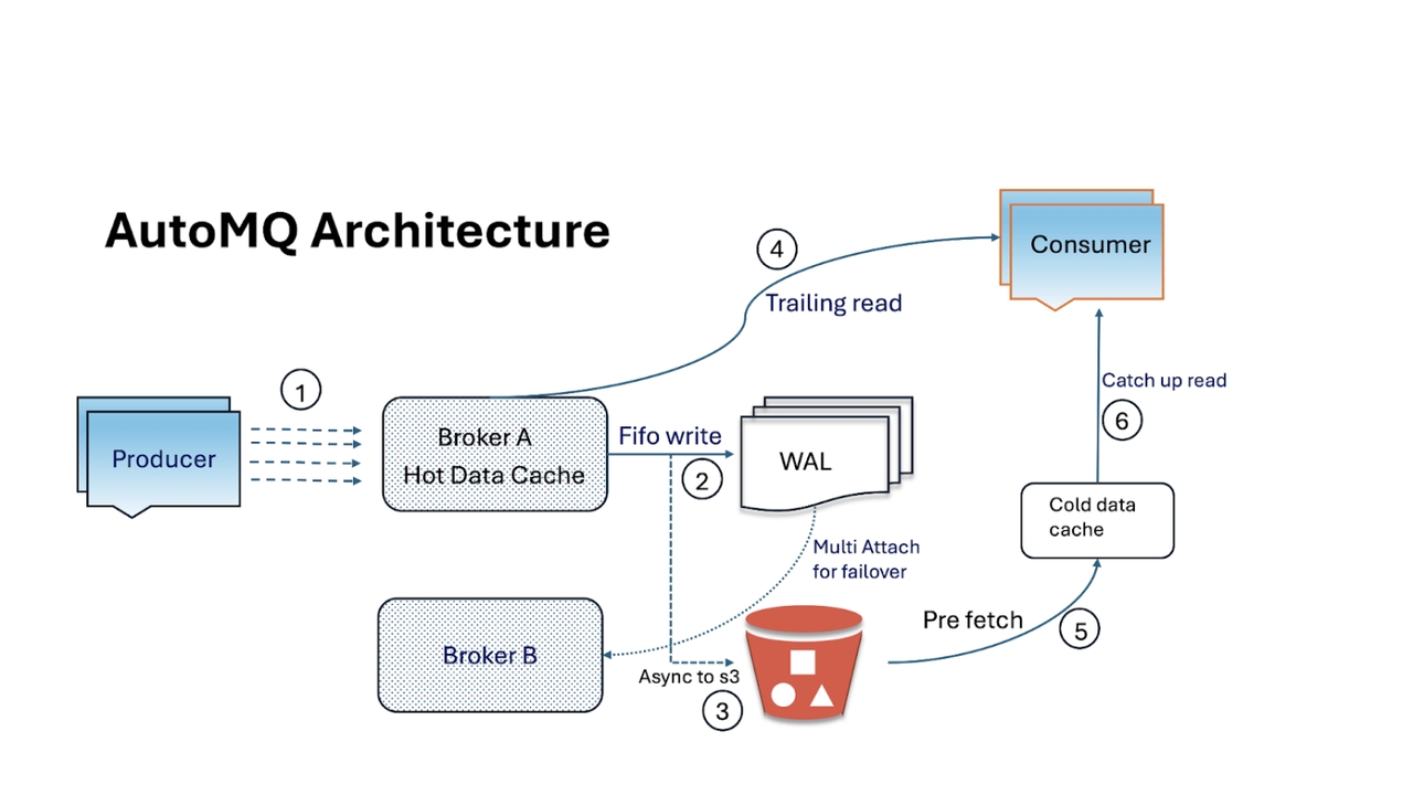这与 Kafka 的设计理念存在巨大差异。AutoMQ 将计算与存储彻底解耦,这正是其设计的精妙之处。若你想深入了解,可查阅其官方文档。
