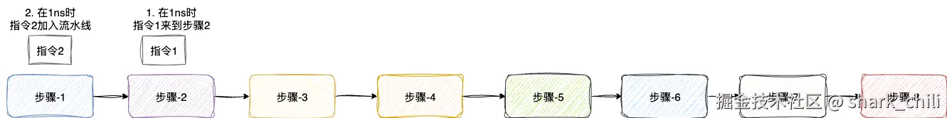 - 执行一条完整的指令需要经过4个步骤对应耗时4ns