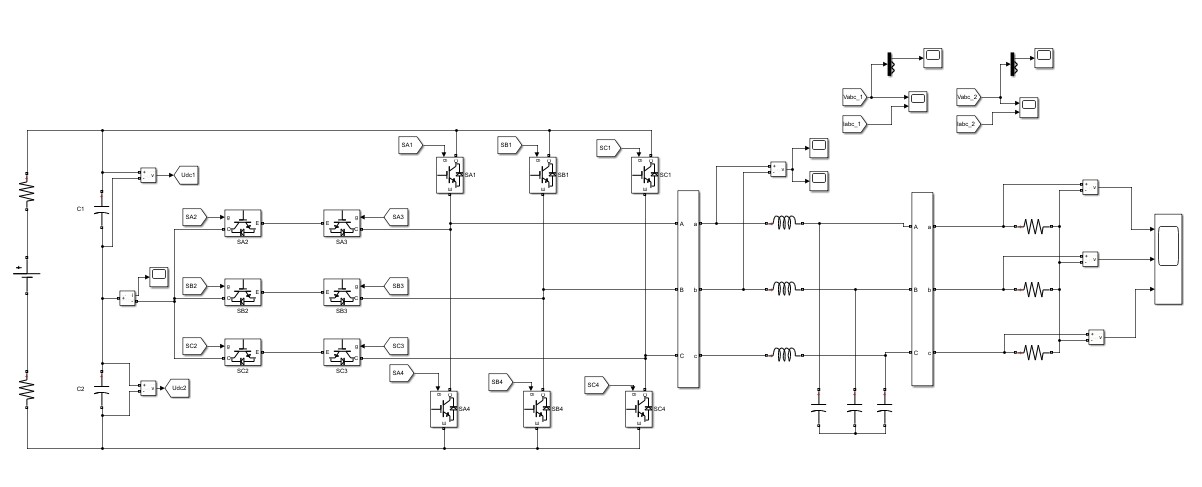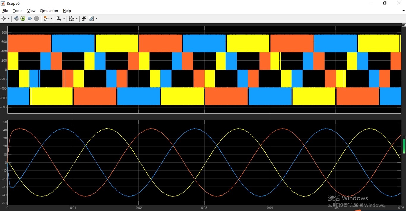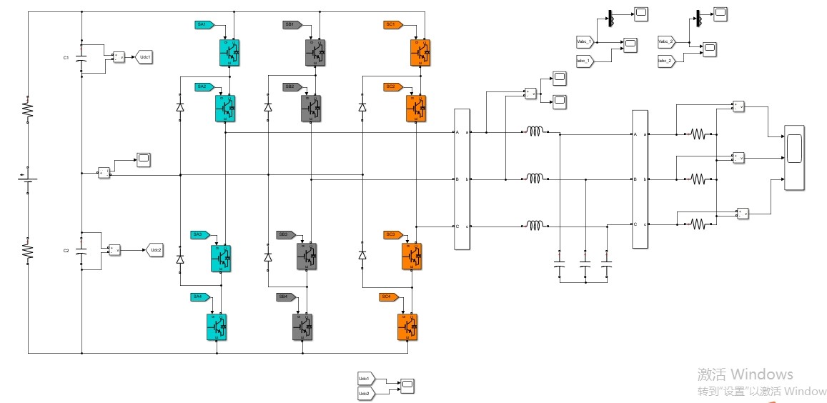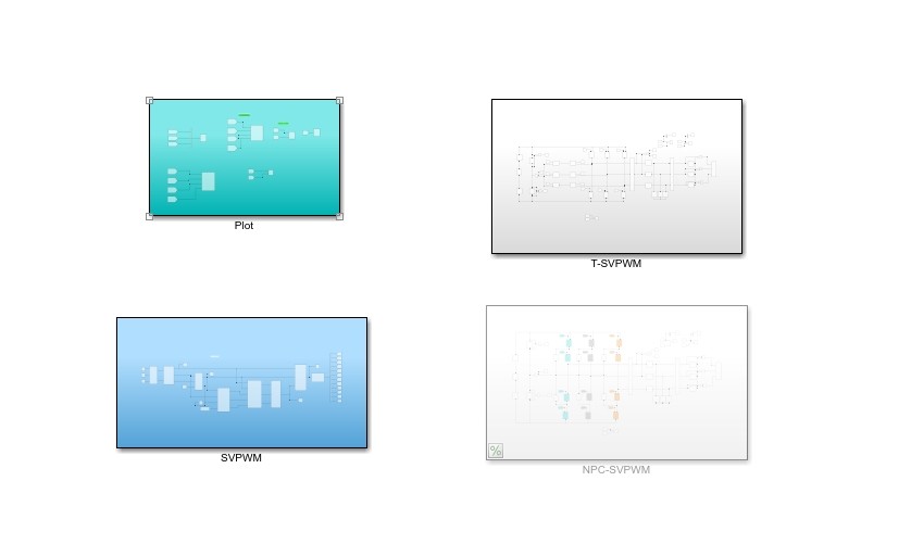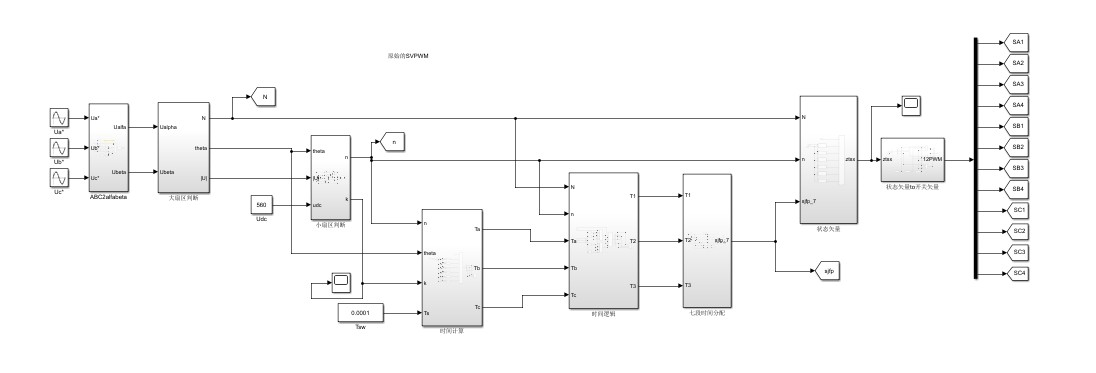 T型和NPC型三电平SVPWM,两种拓扑结构随意切换,经过大小扇区判断,时间判断,时间分配等生成12路脉冲,经过滤波以后,有较好的电压电流波形,可搭配电机控制等模块。