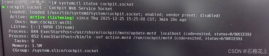 发现在该命令的输出中,port显示的的确是9090端口。该服务是一个免费开源的基于 web 的 Linux 服务器管理工具,通过 Cockpit 提供的 Web 前端界面可以监视和管理Linux 服务器,执行存储管理、网络配置、检查日志、虚拟机管理等任务。银河麒麟系统使用该开源服务,可以禁用,释放这个端口。