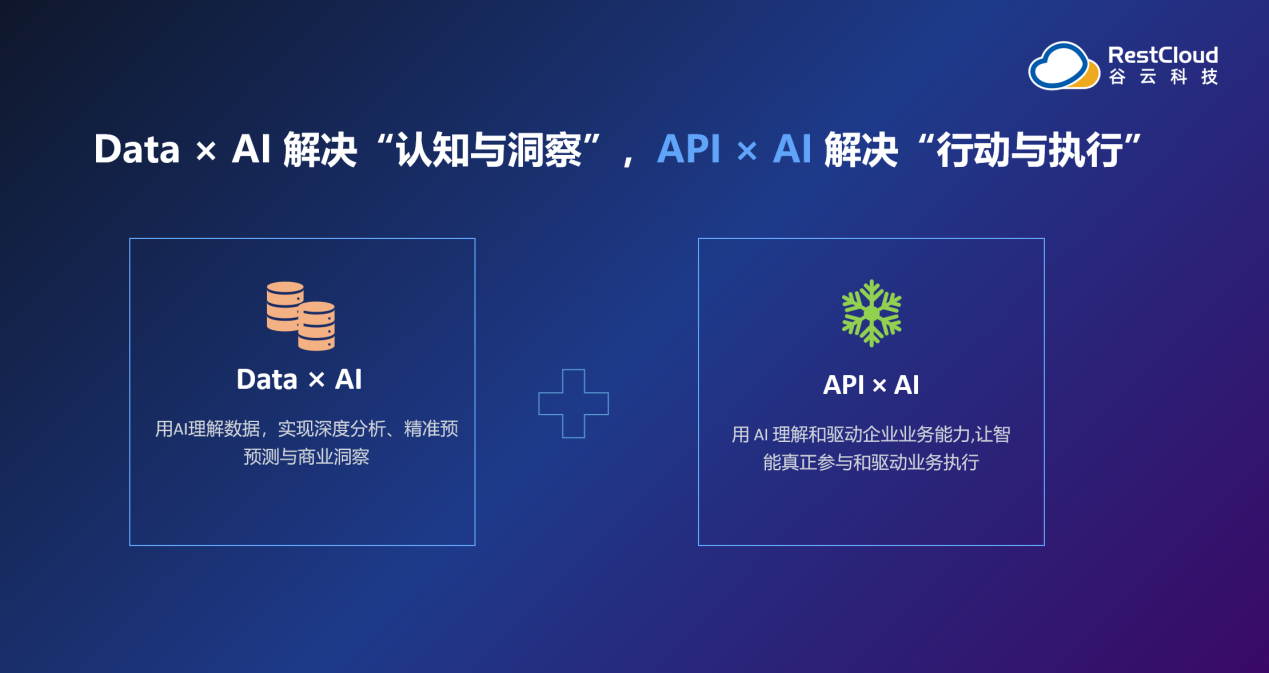 在发布会上,谷云对Data × AI与API × AI做了清晰区分。