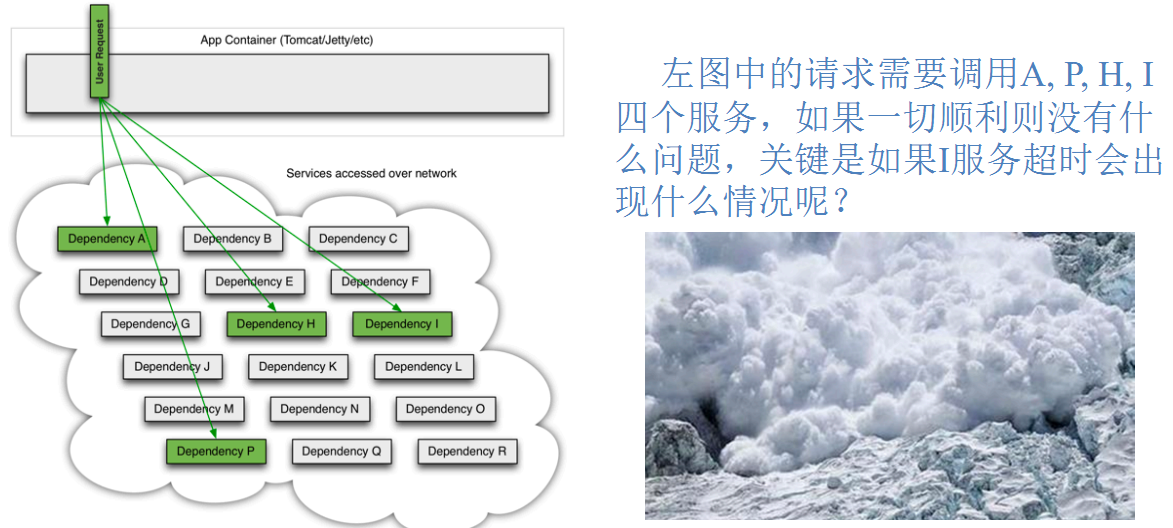 多个微服务之间调用的时候,假设微服务A调用微服务B和微服务C,微服务B和微服务C又调用其它的微服务,这就是所谓的"扇出"。如果扇出的链路上某个微服务的调用响应时间过长或者不可用,对微服务A的调用就会占用越来越多的系统资源,进而引起系统崩溃,所谓的"雪崩效应"。