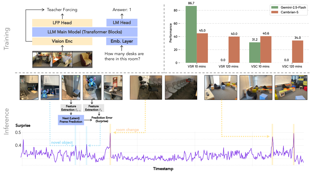 通过这种"只记让我吃惊的东西 "的策略,Cambrian-S 实现了一个超能力: