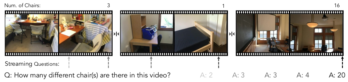 - 分割 (VSC 任务):判定为新事件/场景的开始,触发阶段性总结(如汇总当前房间的椅子数量),清空短期缓存。