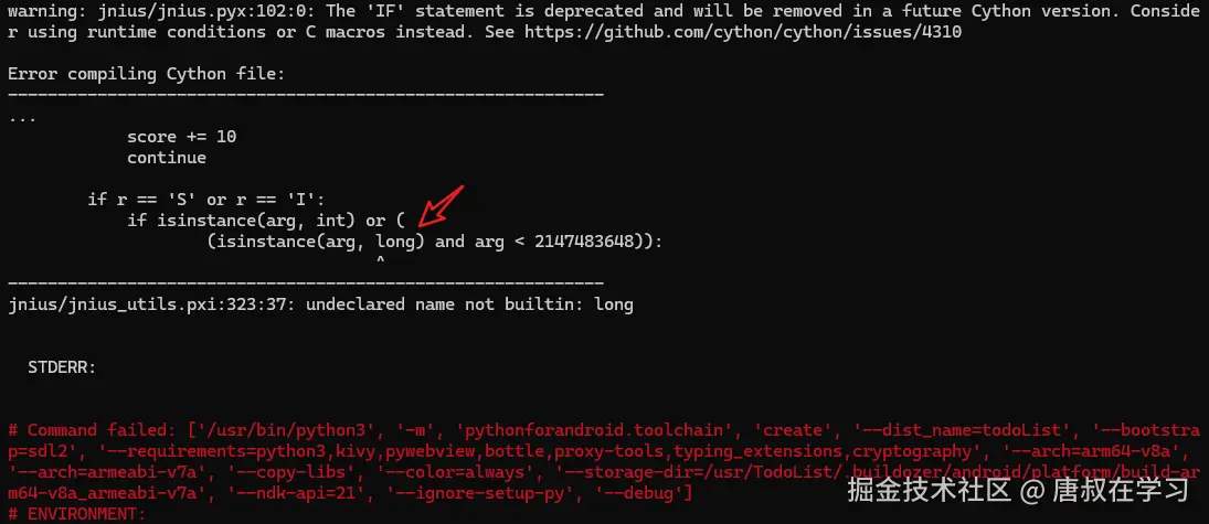 原因 :Python 3 移除了 long 类型,相关 Cython 文件需适配为 int。