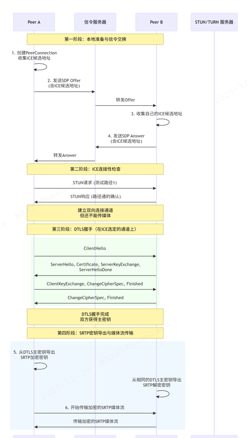 [第四阶段:SRTP 密钥导出与媒体传输](#第四阶段:SRTP 密钥导出与媒体传输)