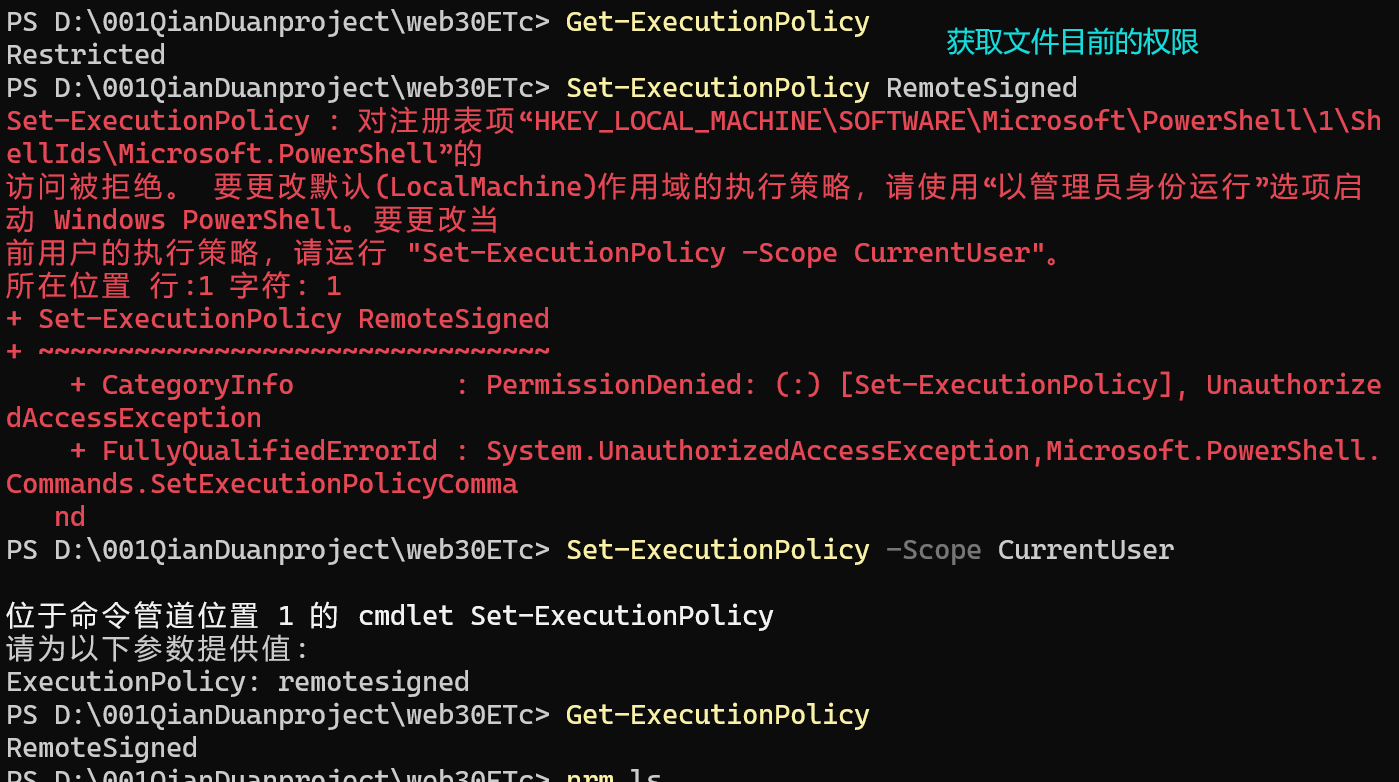 PS D:\001QianDuanproject\web30ETc> Set-ExecutionPolicy RemoteSigned